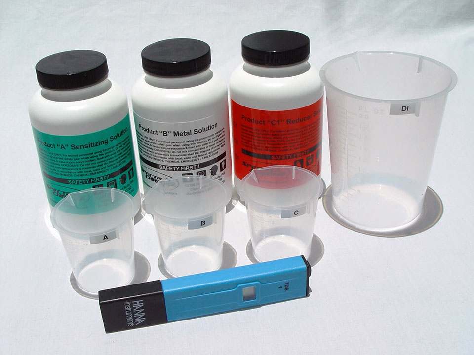 A, B, and C silvering solutions are provided in concentrated form. Simply add